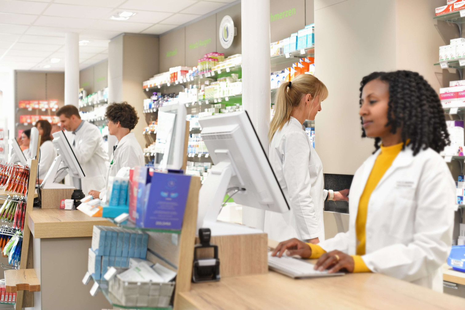 Modernste technische Hilfsmittel unterstützen das Apothekenteam bei diesen zentralen pharmazeutischen Tätigkeiten.